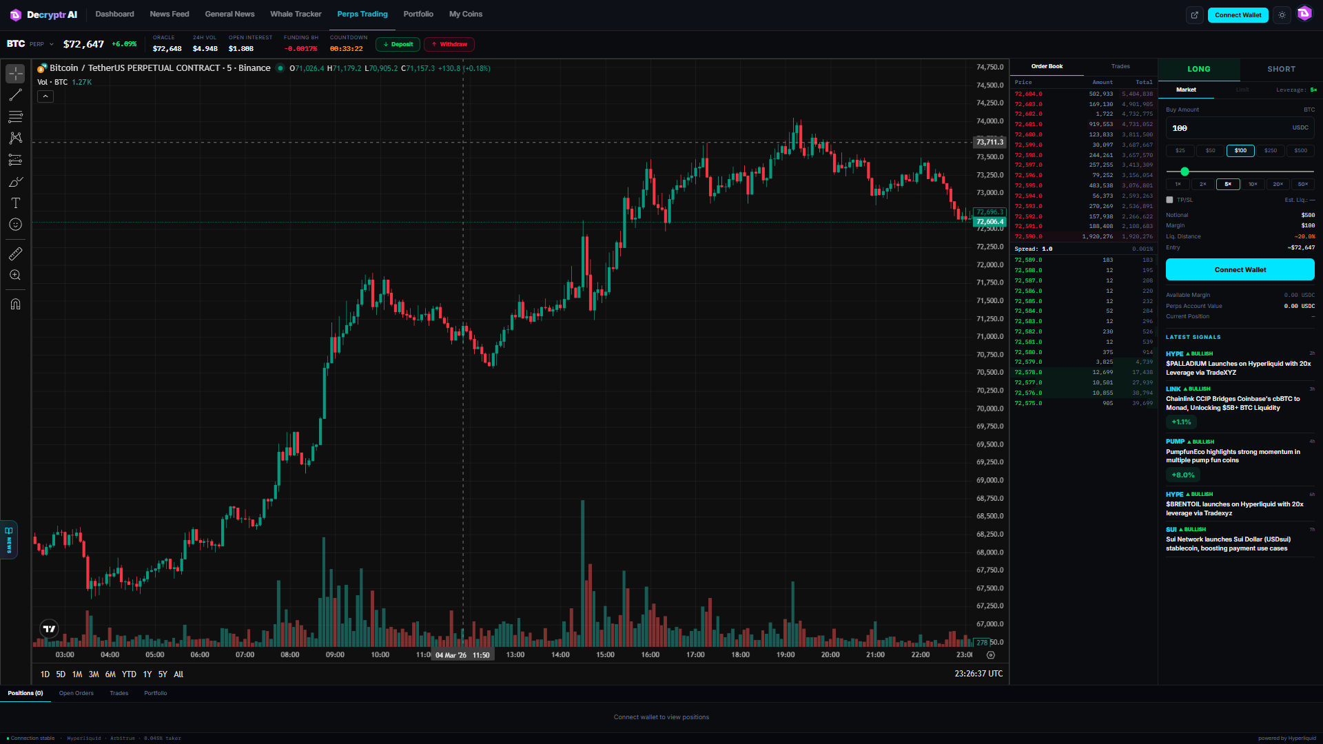 Trading platform - execute from any signal via Hyperliquid, no tab hopping