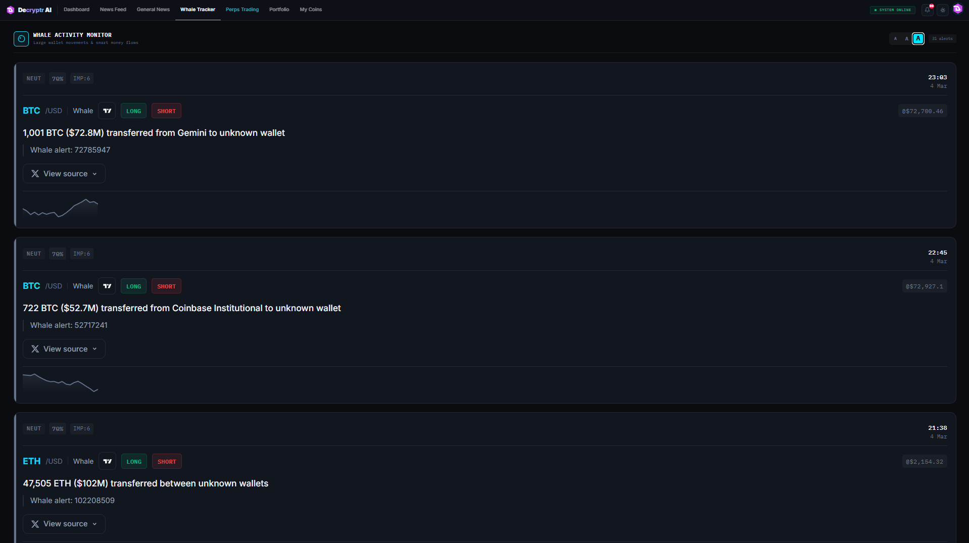 Push alerts for signals, whale activity, and general news - never miss a move.