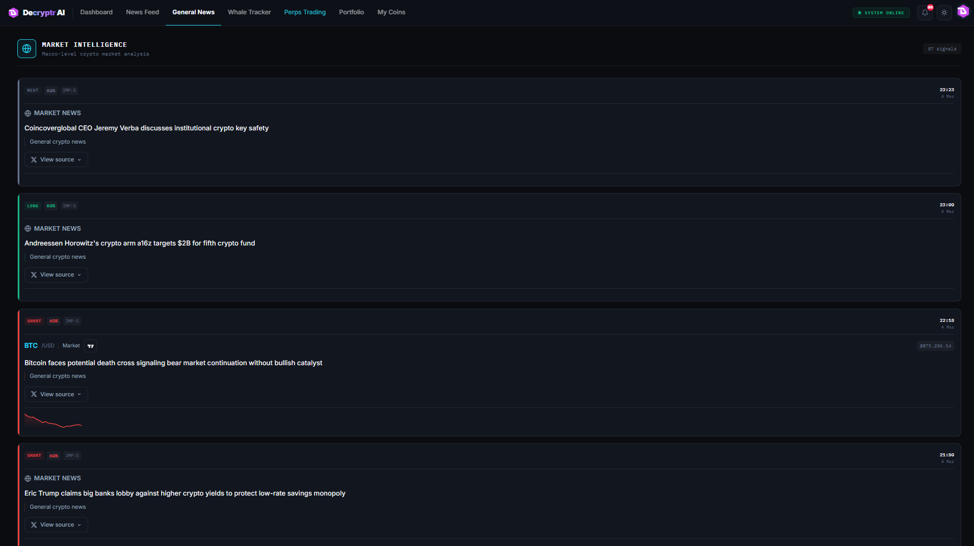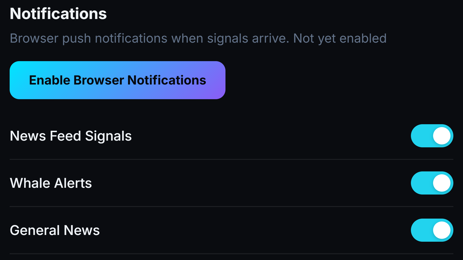 Push alerts for signals, whale activity, and general news - never miss a move.